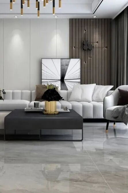 無彩色是現代簡約風格的常用色彩,其中白色常用作背景色出現,軟裝中可以搭配黑、白、灰、金、銀這幾種色彩。