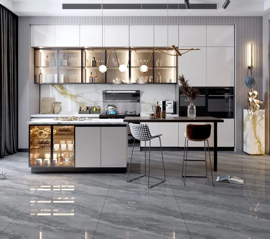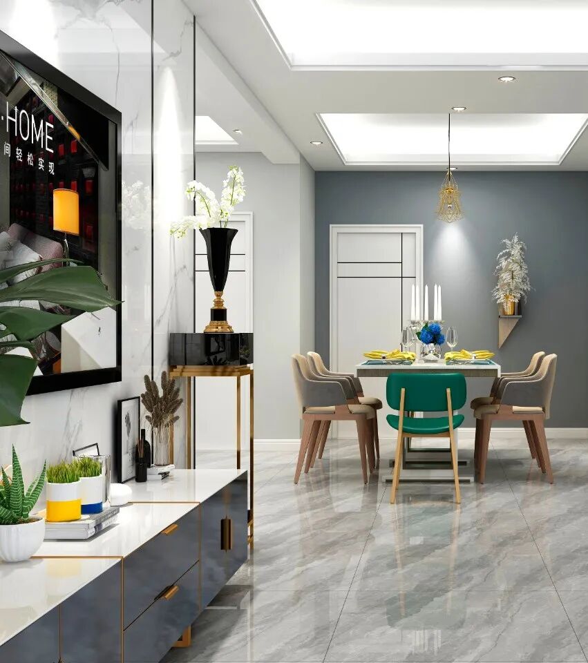 深灰色與黑白色是最搭的,在簡約中增添幾分深沉,即凸顯時尚,又不失高雅。現代風的設計,總是能抓住產品的特性,巧妙的進行搭配,呈現出自然完美的舒適空間。800X800連紋磚對于空間的大小無任何要求,無論多大空間都可以做到靈活運用,收放自如。在空間運用中無論是單片直鋪還是混合直鋪,都不影響整體美觀度,即“一片磚,一個空間”。