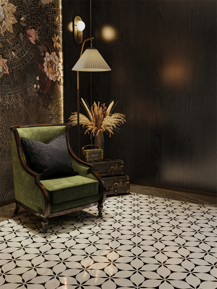 幾何形構花態,“花影” 借虛實、剛柔,以秩序與留白,賦予空間藝術張力 。