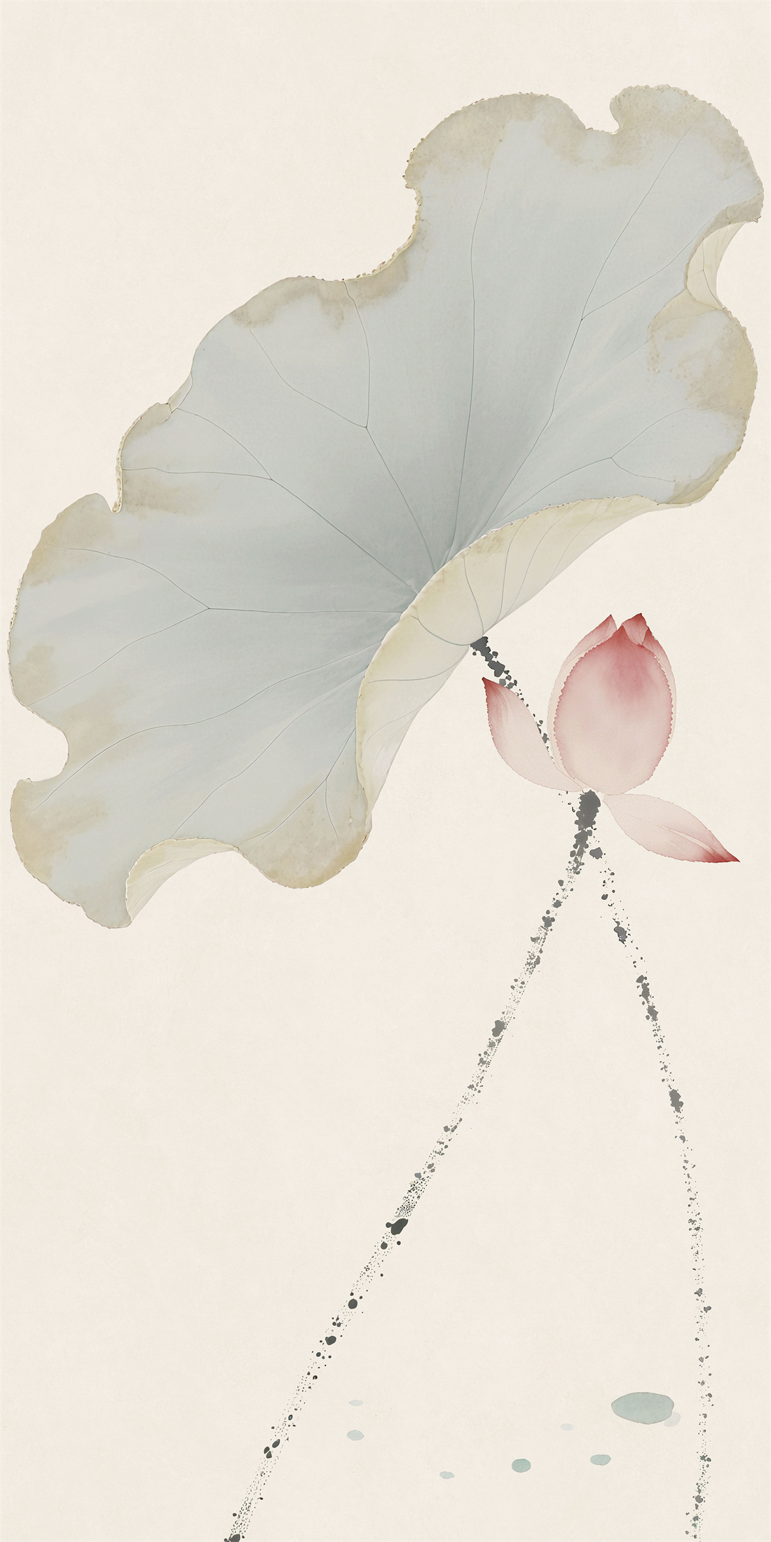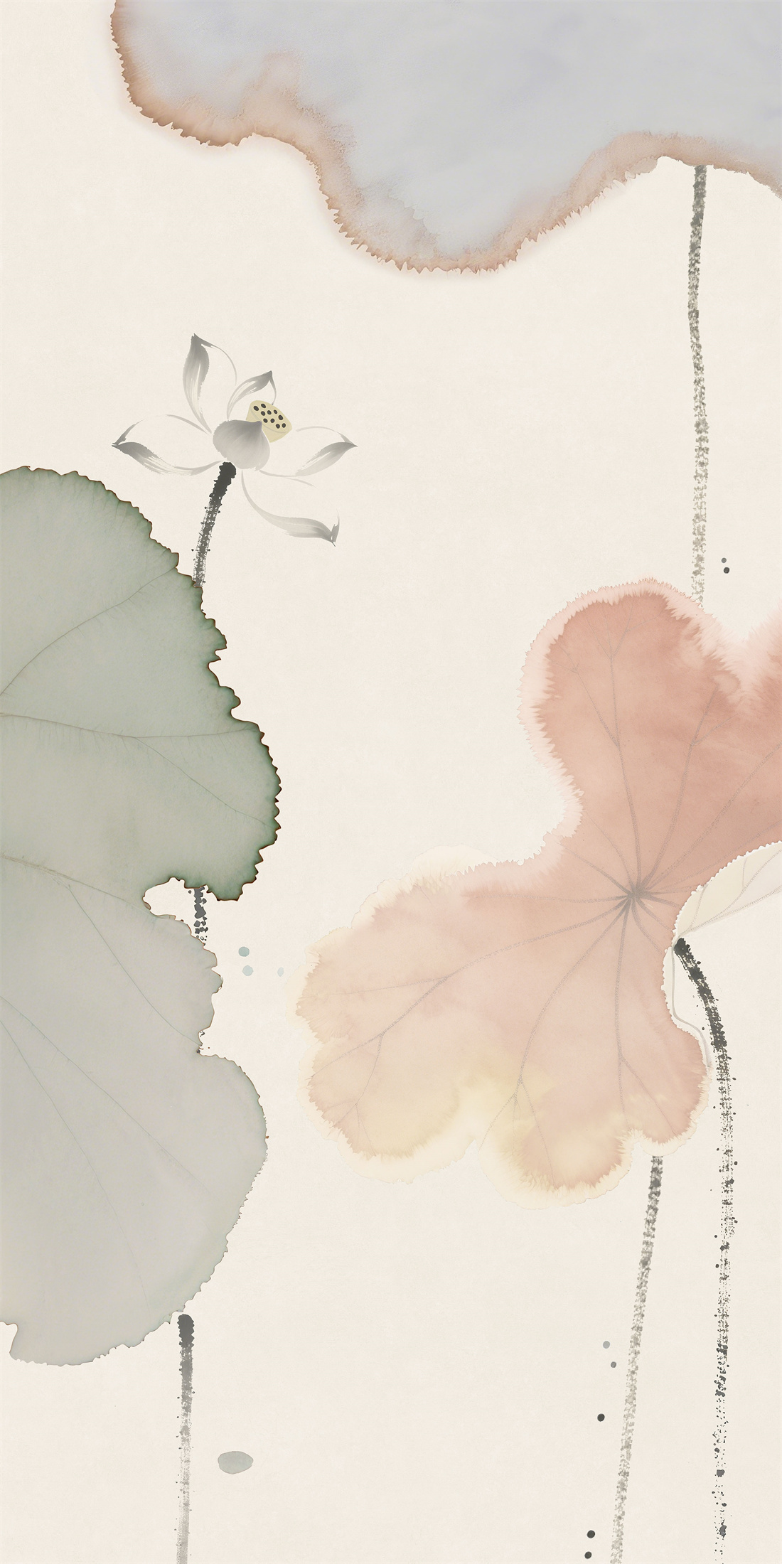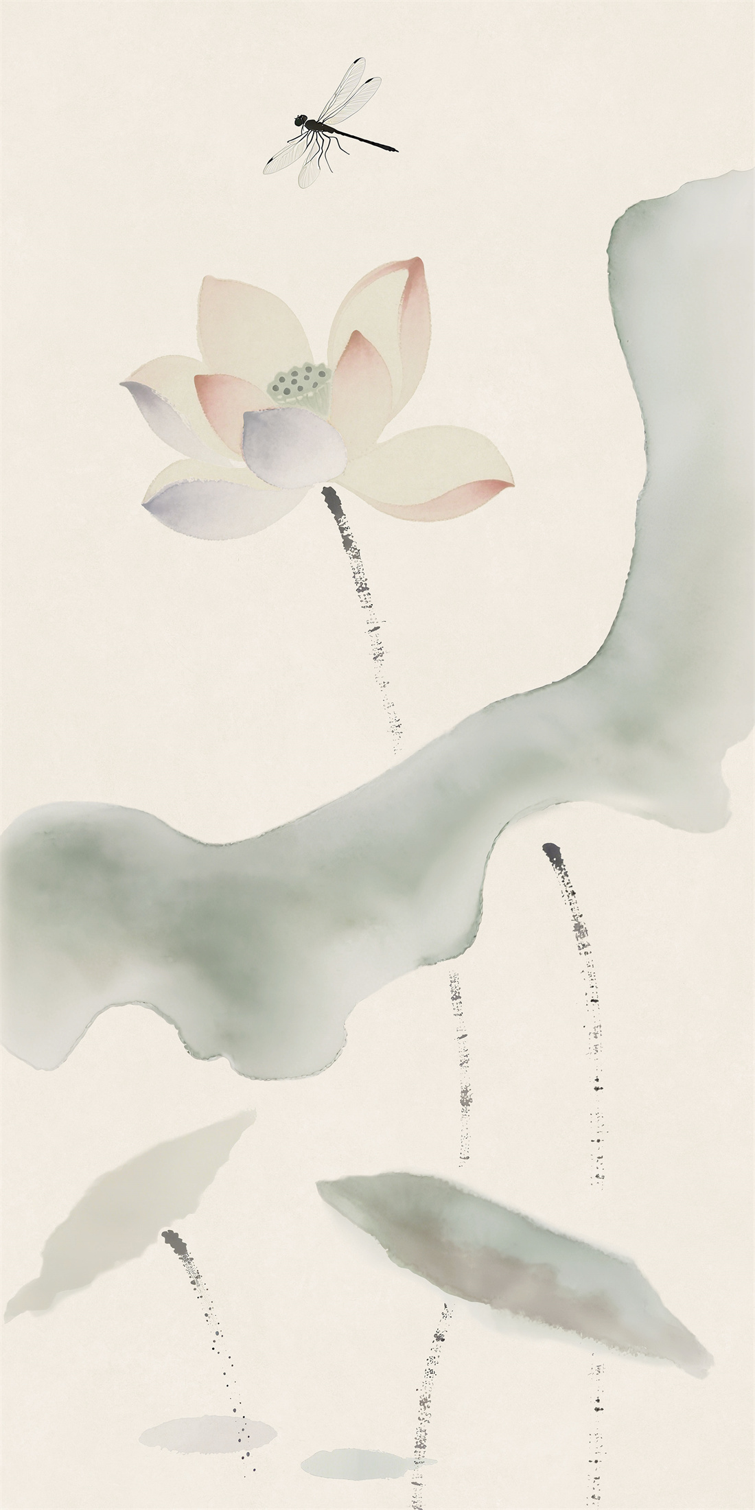 水墨氤氳勾勒荷花與蜻蜓,復刻中式復古筆觸,定格雨后荷塘的清雅朦朧之美。
