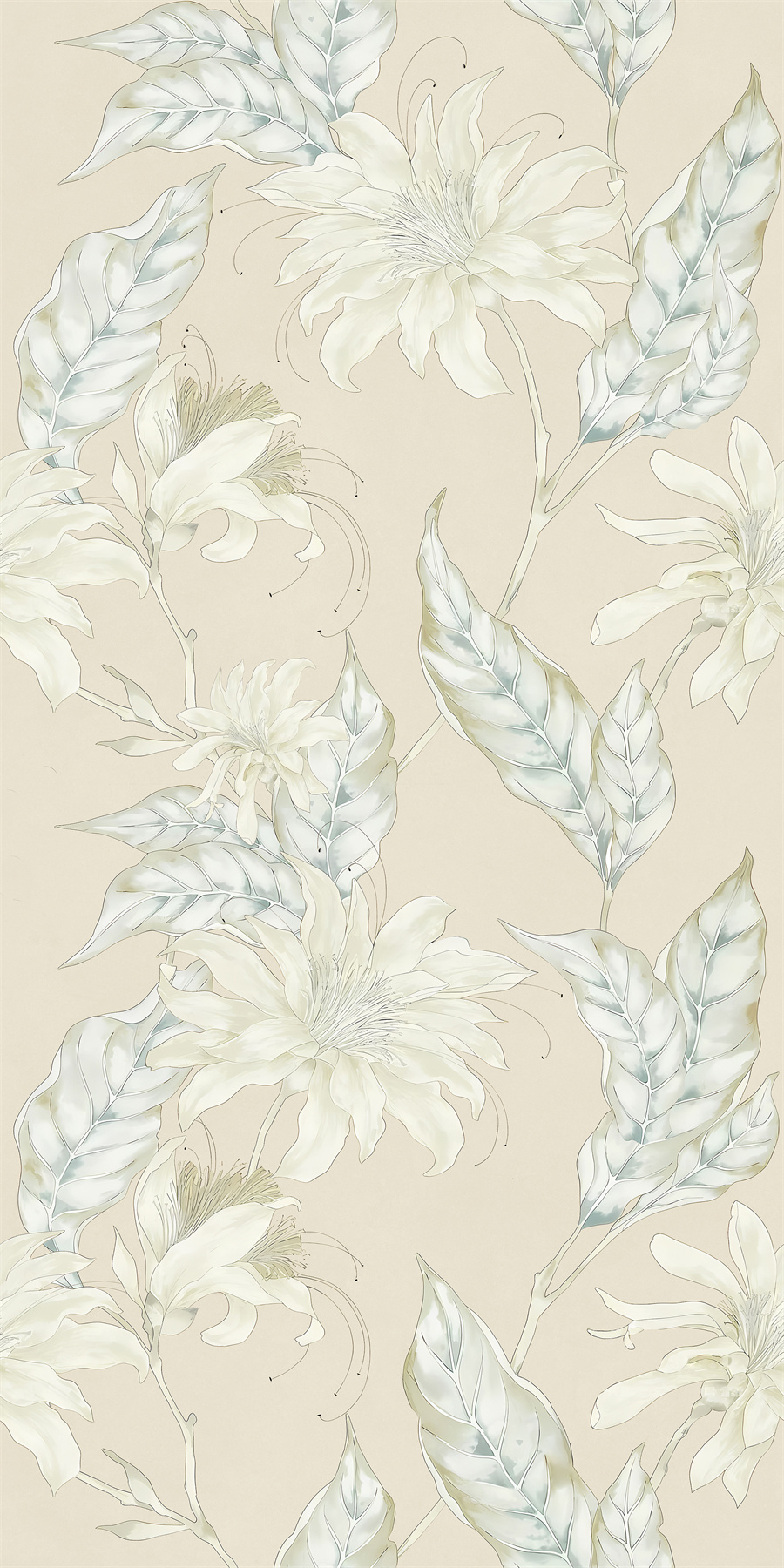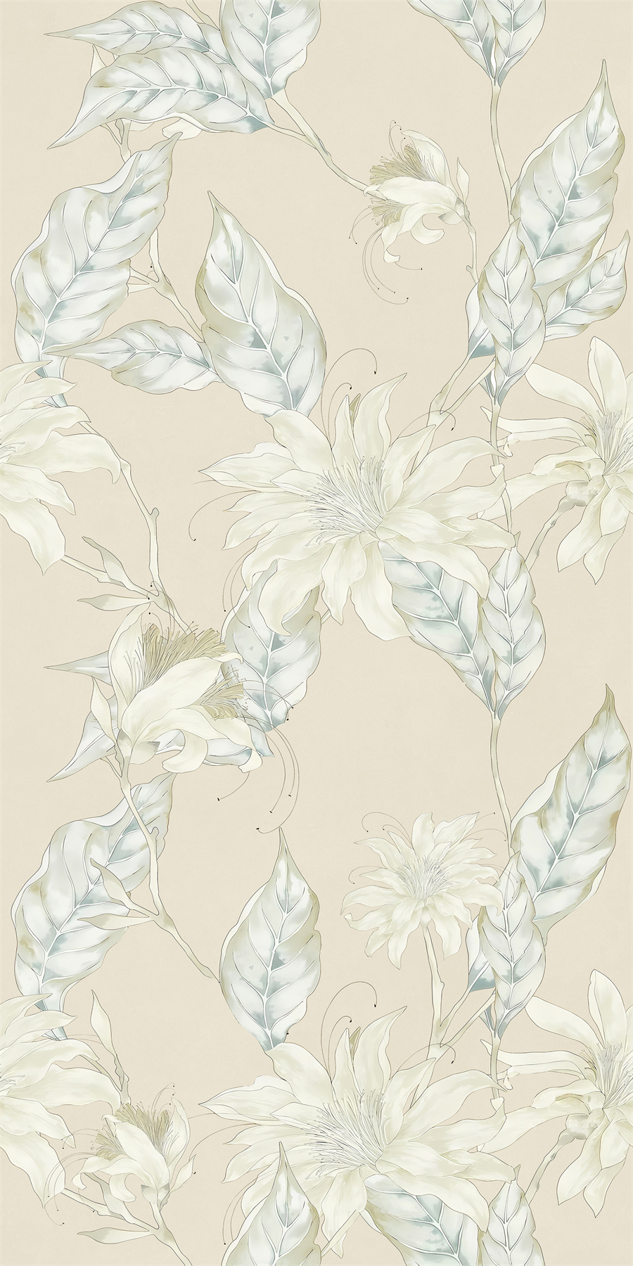 淺米底上綻放柔美花卉,構圖疏密有致,色彩淡雅,寓意生命的靜謐與燦爛。