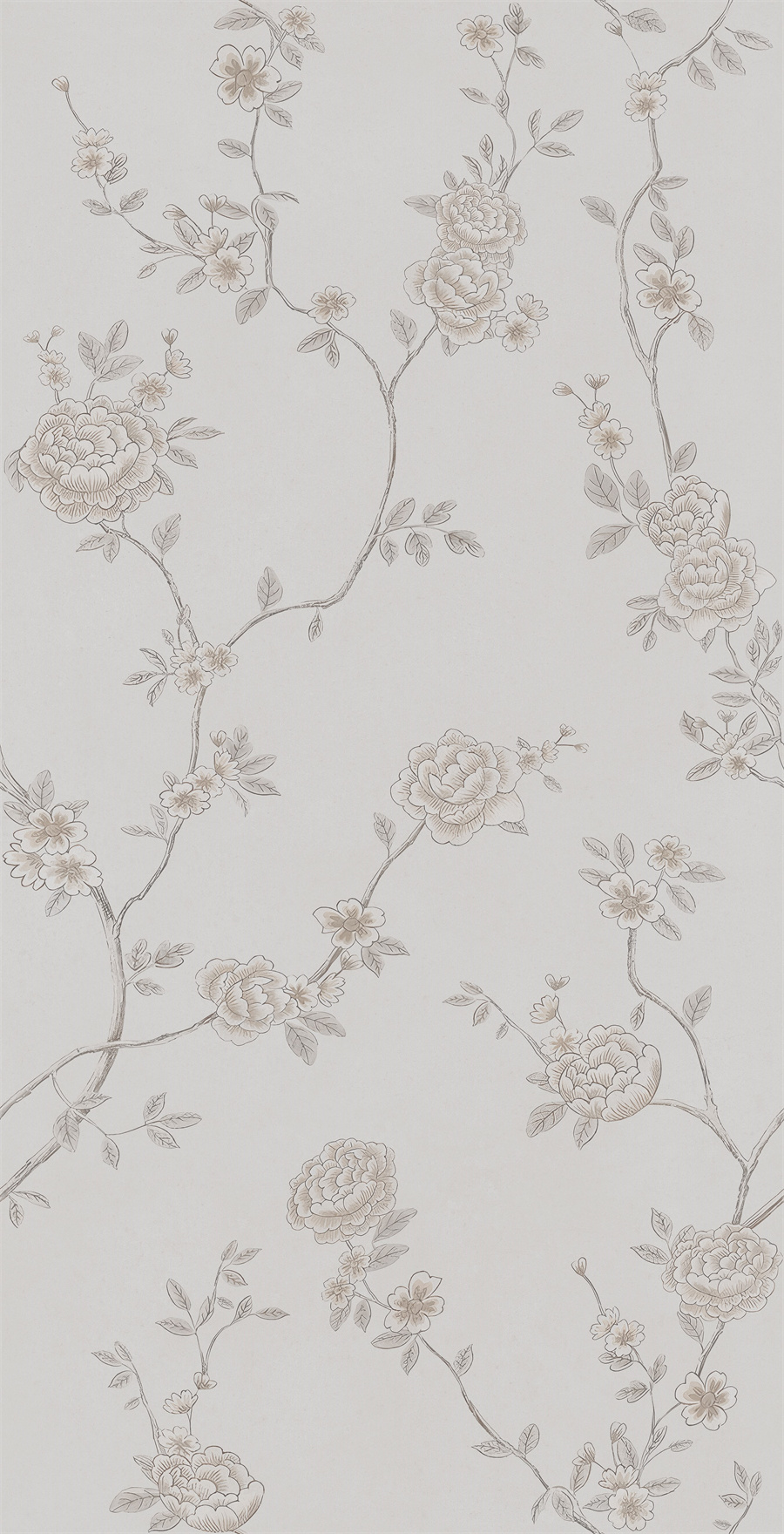 極淺灰底蔓延纖細花枝,牡丹、櫻花等有序分布,營造典雅溫柔的層次韻律。