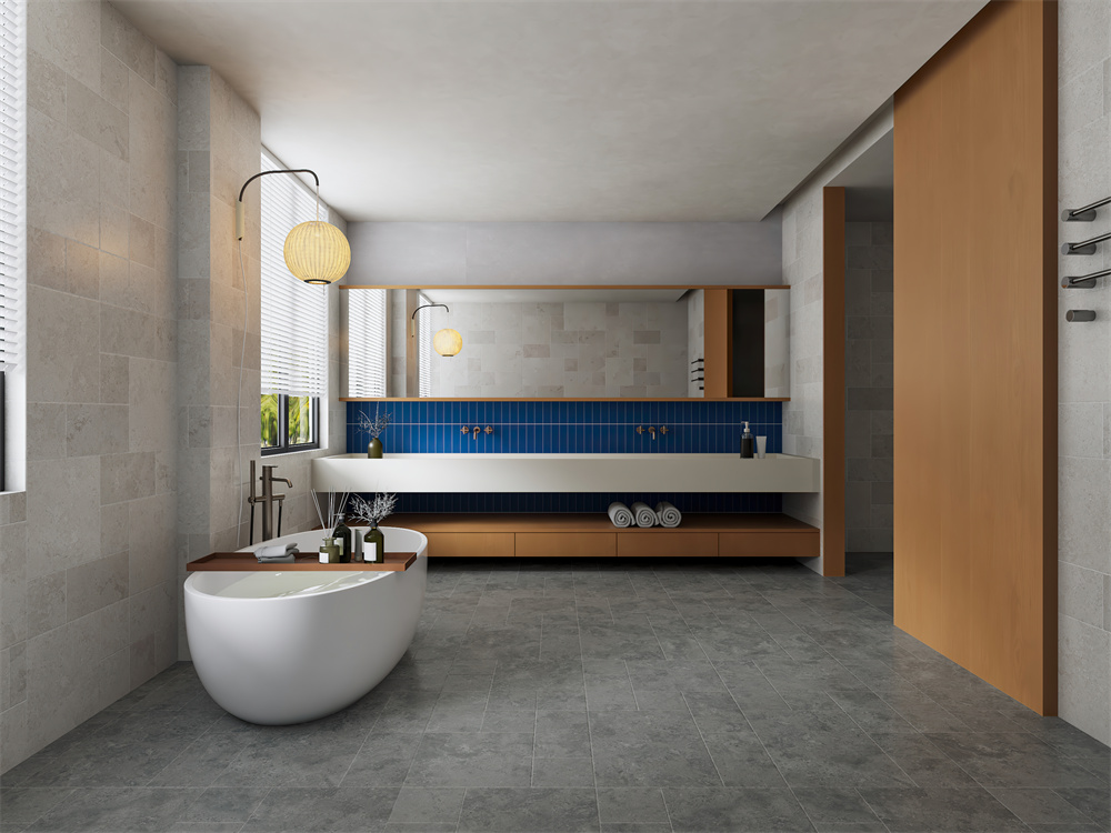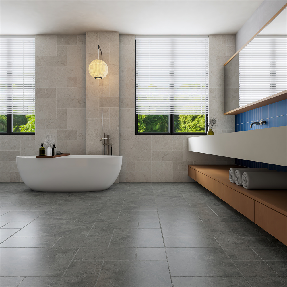 淺灰白基調如古堡石墻映照暖陽,啞光表面流轉細膩石紋,微模法式拼貼勾勒錯落韻律。